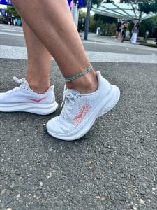 Durant six semaines, j’ai eu l’occasion de mettre à l’épreuve ce modèle Hoka dans des conditions très variées. Avec mes 53 kg et ma pointure 38, j’ai accumulé 180 km de course sur différents terrains : routes, chemins stabilisés, portions de sentiers avec un dénivelé positif léger (jusqu’à +850 m).