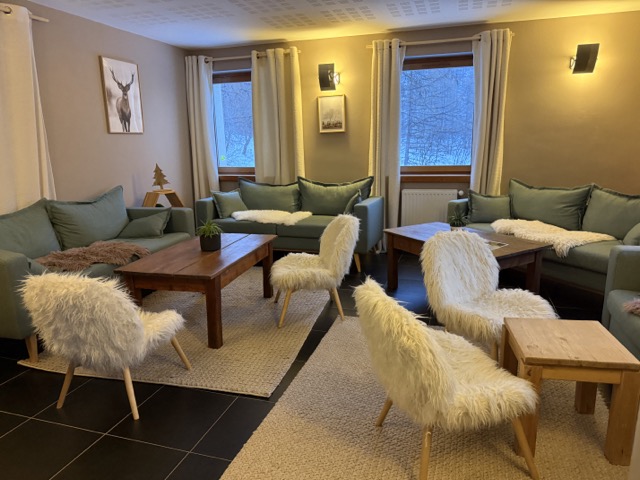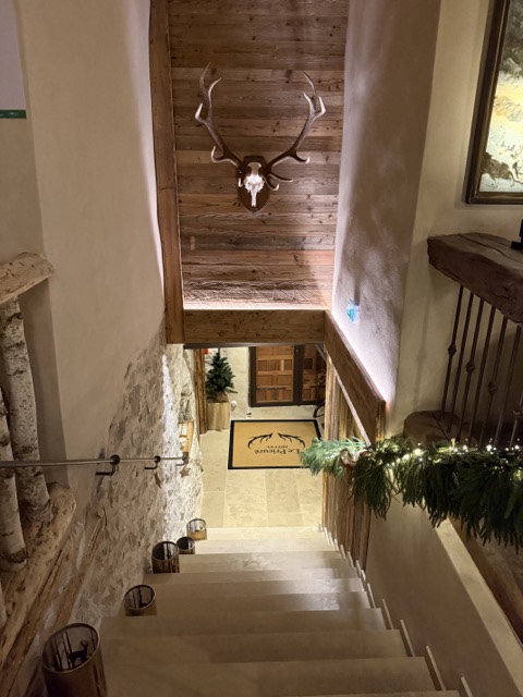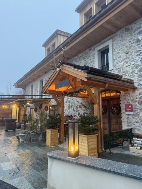 Cette histoire se ressent encore dans l’architecture et dans l’ambiance générale. Le bâtiment mêle pierre, bois et matériaux naturels, dans un style qui rappelle à la fois les chalets alpins et les constructions traditionnelles de la vallée. L’ensemble crée une atmosphère chaleureuse et apaisante, parfaitement en accord avec l’environnement montagnard.